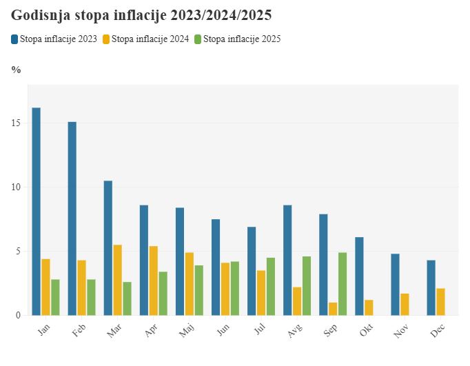 Monstat: Inflacija u septembru 4,9 odsto