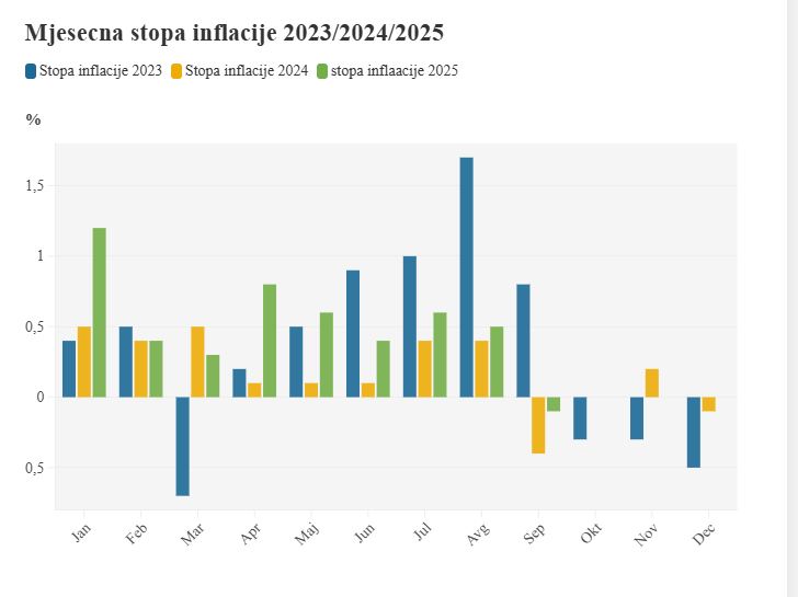 Potrošačke cijene su u septembru, u odnosu na avgust, u prosjeku bile niže 0,1 odsto.